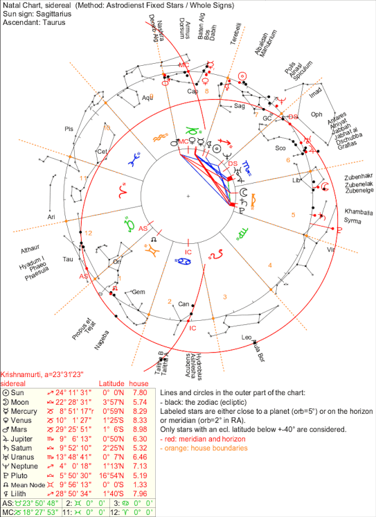 - Select the Sidereal button and choose Krishnamurti (0°59) from the drop-down in the Options for Zodiacs and houses menu