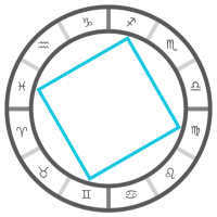 Dividing the horoscope wheel by four and connecting the points where the circle is intersected gives an regular quadrilateral (and equilateral square). Signs of the same mode (also known as quality or quadruplicity) sit at the points of the square at 90° (three signs) apart. The Mutable signs are Gemini, Virgo, Sagittarius and Pisces.