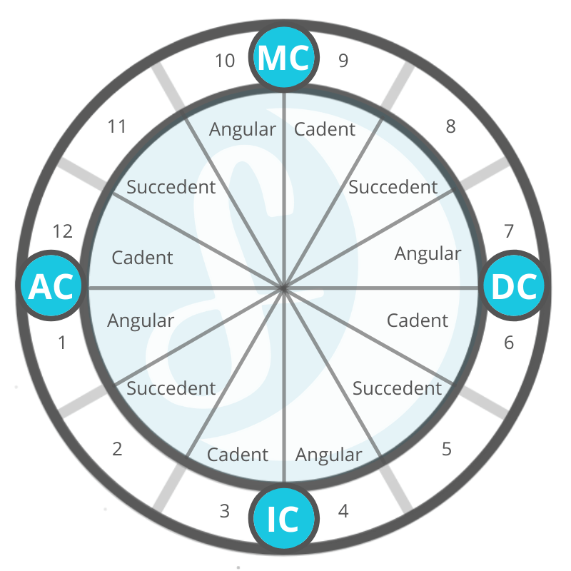 The houses that line up with the angles: 1 & 7, 4 & 10 are considered Angular houses which have a sense of cardinality, action and ‘getting stuff done’ about them. They’re the fast-moving, action oriented power-points of the horoscope.