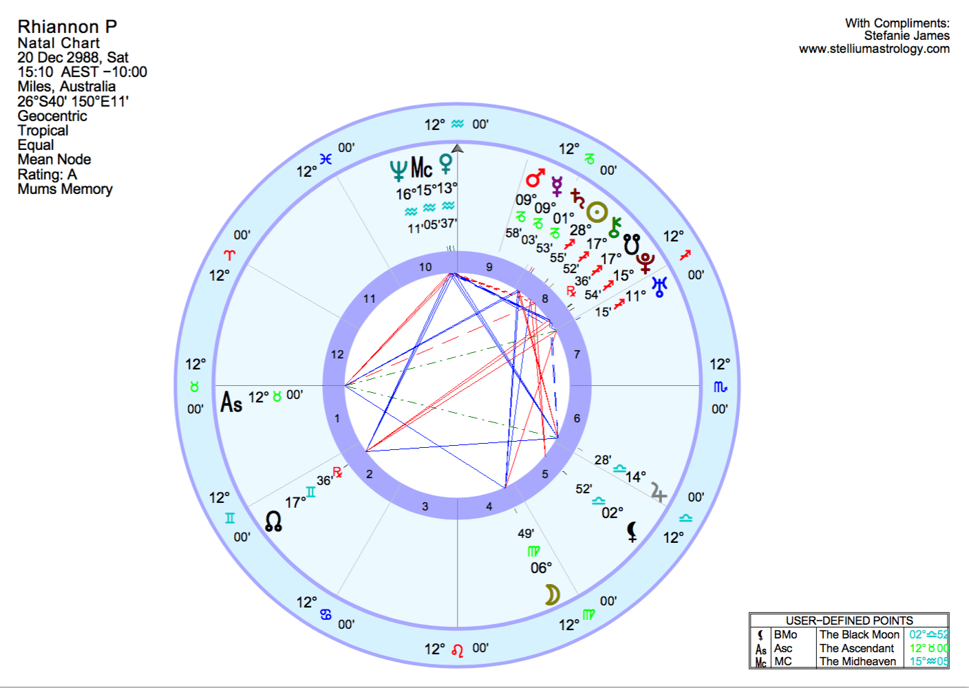 One of the parental indicators in the chart and a prominent feminine archetype, the Moon reveals our maternal bond while describing our past, what nourishes us and helps us to feel safe and secure.