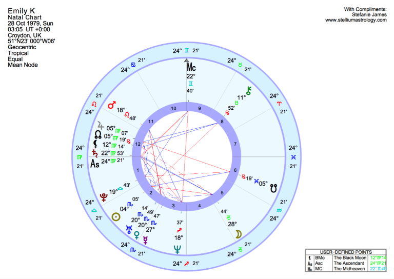 Emily has serious Saturn rising in critical Virgo, which is trine her Moon in Capricorn – the sign ruled by Saturn.